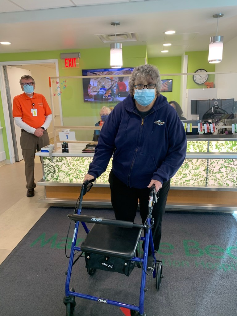 I parked in the parking ramp and grabbed my mask. I was off to get my mom. I imagined her waiting on the curb but thank goodness that wasn’t the case. Every time the elevator door opened I would get excited. Each time it would be someone else, someone less jovial. Finally this time it was my mom. Damn I missed her so much. She was walking with a walker but looked so much better than the last time I saw her. It was like she was the queen of the parade. Waving and saying goodbye. I think there was even some clapping. I was honestly busy trying to focus on not crying. We got her and her bags loaded in and we were off. She tried to talk me into going to Hobby Lobby. Not today mom, not today.