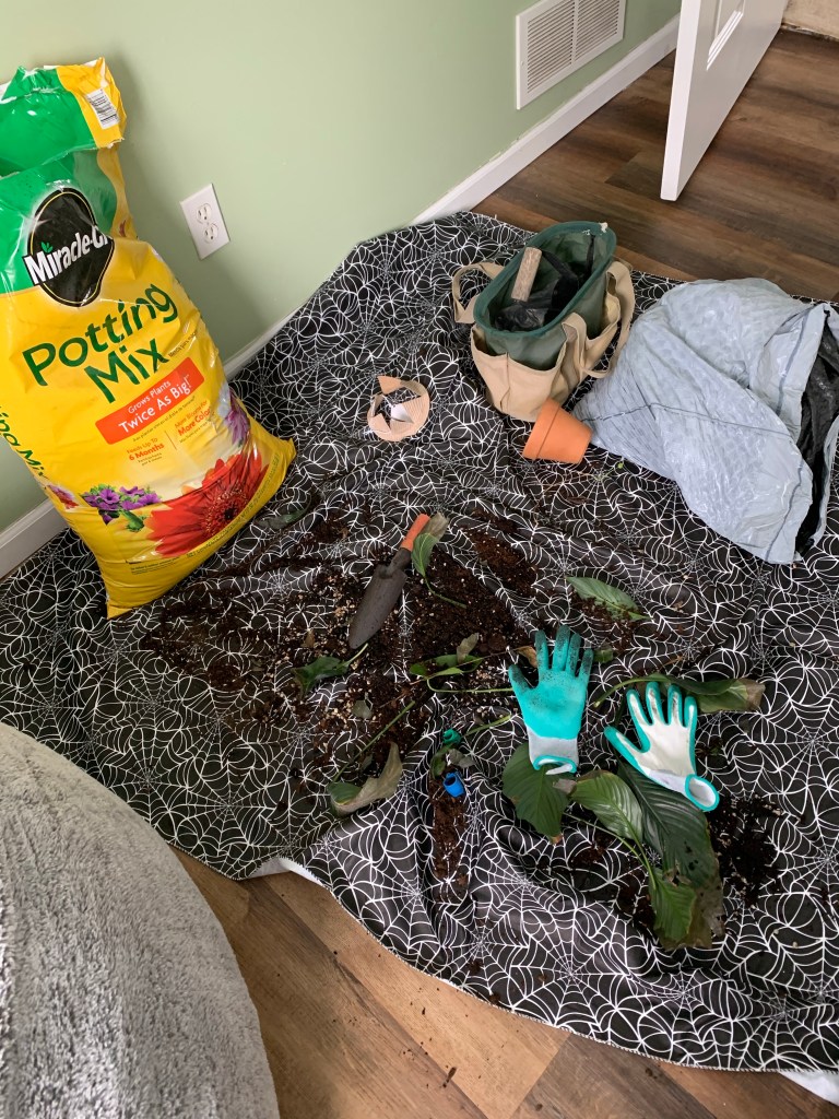 I also managed to re pot all of my plants. We got some potting soil last night at Lowe’s. I’ve never been a plant person until I inherited some from my mother in law. I find them therapeutic and relaxing. I also miss Bernie terribly. These plants remind me of her and I’ll be damned if they are gonna die on my watch.
