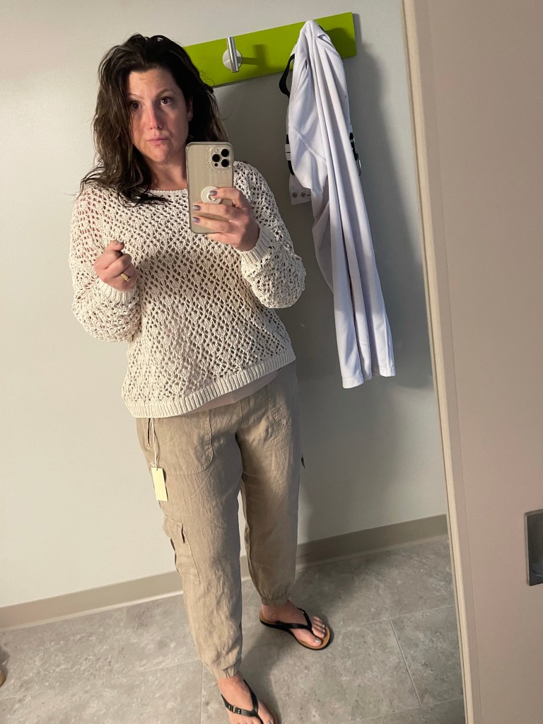 The boys were going to go to the Tigers game last night so I googled the nearest Marshall’s and went on my merry way. Unfortunately for them the game got cancelled. Lucky for me I was already through the shoe department and into the clothes by the time they found out. They went to dinner with the team and I got some shopping therapy. I’m a firm believer in therapy, conventional and unconventional.