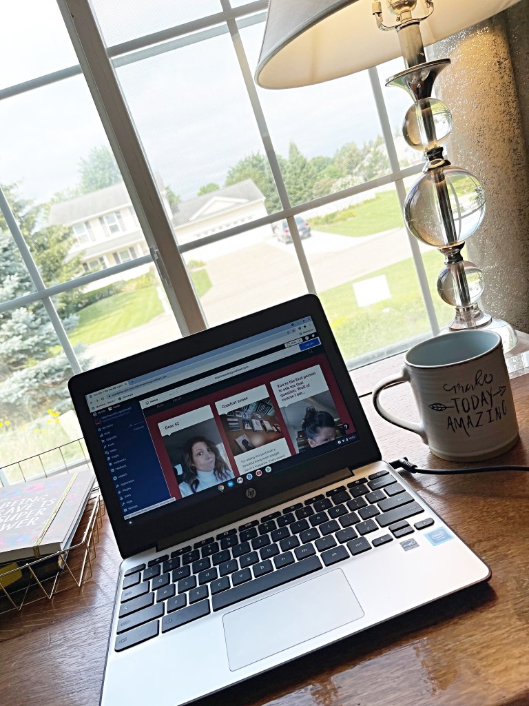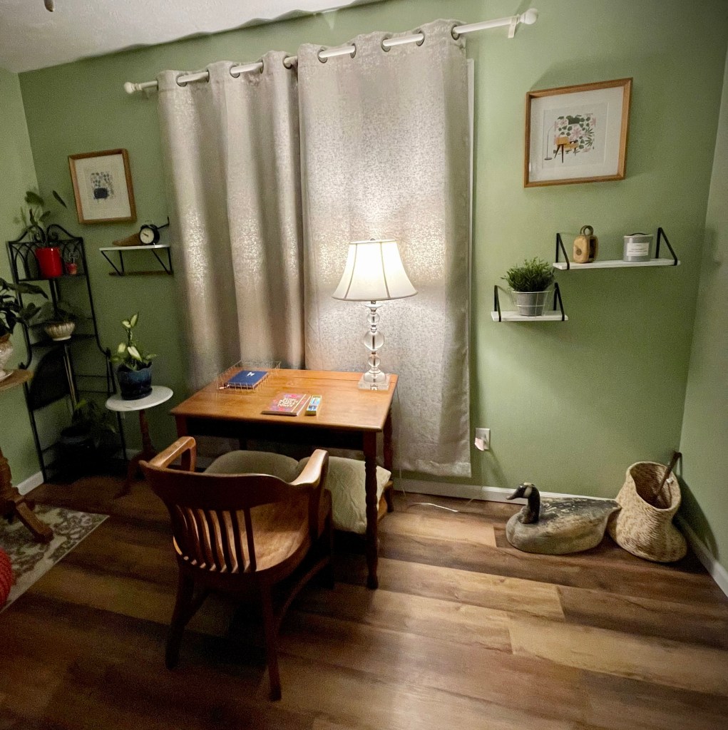 My husband is always the first to wish me a happy birthday. Of course he has the advantage of being the first person that I see when I open my eyes, so there’s that. This year he physically gifted me 2 notebooks and a pen. What I don’t think that he realized was that what he actually gifted me was so much more. He gifted me the knowledge and reassurance that he listens to me and has my back. He acknowledges my dream and 100% supports me no matter what. He set up a writing area with a table and a chair in our spare room. Its not just a table and a chair though. Its the table that was in the family room of my in laws house. My Mother in law and Father in law are both gone and any chance that I can get to incorporate them somehow into our daily life, I try.