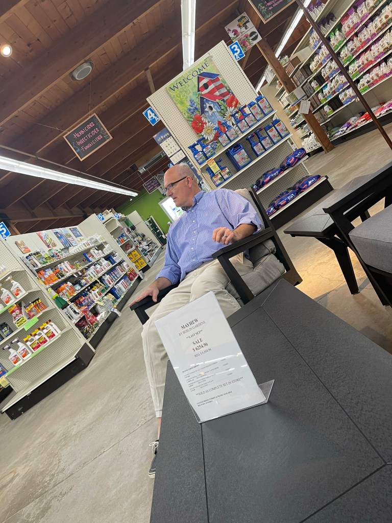 Next stop was Flowerland. They have the most beautiful flowers and shrubs. I also know that that are quite a bit more expensive than other places. My plan was to prove that the trees at Lowe’s were a good deal. As we were walking down the isles it was becoming clear to Chuck that I was in fact right. We looked at the patio furniture just for fun. Our budget is more Walmart clearance but it felt good to pretend we could afford the good stuff.