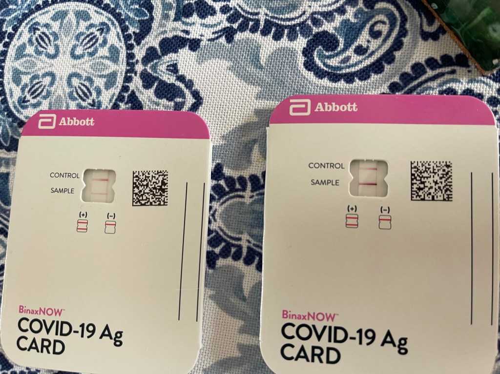 I messaged a friend that works in a pharmacy, she said they were expecting a shipment. Hallelujah something worked out today. I made the hour round trip, and swabbed the shit out of those little noses. It’s similar to a home pregnancy test in the fact that there a test strip, a waiting period, and 2 pink lines means positive.