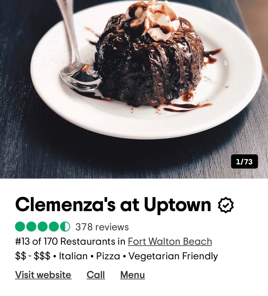 It was now 7pm Destin time and I was getting hangry. Between the delays, the mechanical issue and the de icing I did not adequately prepare. I got on Trip Advisor and found a restaurant. It was a small Italian place. The meal was amazing and I was officially one for one on my blind picks.